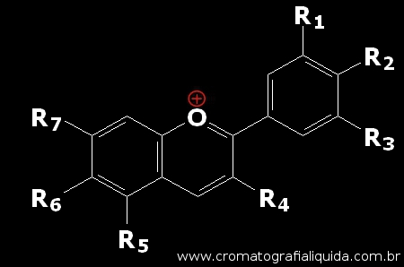 As antocianinas possuem espectro de cor que vai do vermelho ao azul, apresentando-se também como uma mistura de ambas as cores resultando em tons de púrpura. Muitas frutas, hortaliças, folhas e flores devem sua atrativa coloração a esses pigmentos que se encontram dispersos nos vacúolos celulares. Exemplos de fontes de antocianinas: repolho roxo, acerola, açaí, morango, amora, jambo, romã, jambolão, uva, etc. Glicose, arabinose, galactose, xilose, frutose e ramnose são os açúcares mais comuns ligados às agliconas. Dissacarídeos, trissacarídeos e oligossacarídeos formados pela combinação destes seis monossacarídeos podem também glicosilar algumas antocianinas. Em muitos casos os açúcares podem ser acilados por ácidos fenólicos como p-cumárico, caféico, ferúlico e sinápico. |