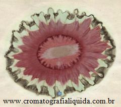 o solvente da tinta ia se deslocando do centro do papel em direção à borda. O resultado final era uma figura formada onde era possível visualizar os diversos